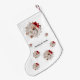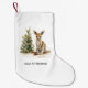 The front of the stocking features a charming watercolor illustration of a sweet baby joey in a Santa hat, standing beside a whimsical Christmas tree. Below the art, you can add a loving message or a name, like "Our Little Joey" or "Baby's First Holiday," to create a festive and unique keepsake.