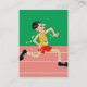 Illustration of an athlete racing around the sports track with sweat dripping from him. Image available on various gifts and products. Personalised business cards.