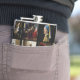 Well made flask, a little better than I had expected. Flask came in clear plastic box which gave it a nice presentation when I took it out of the zazzle packaging. Image is not printed on flask but on sticker. Don't know how this will hold up I haven't used it yet. This would make a Great gift! I plan to purchase more for friends! Cheers. I thought a little brighter than computer. Very crisp, writing wasn't