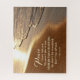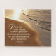 Inspirational quote jigsaw puzzle depicts a a beautiful scene of the evening sun shining on the ocean beach and features Bible Verse John 14:27, in the words of Jesus, "Peace I leave with you; my peace I give you. I do not give to you as the world gives. Do not let your hearts be troubled and do not be afraid."~