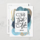 Christian postcard with inspirational quote scripture depicts a modern blue, grey, black and gold abstract watercolor in a trendy art design. It features a portion of Bible Verse John 14:6 on the front and the entire verse on the back; Jesus answered, “I am the way and the truth and the life. No one comes to the Father except through me." The greeting, prayer can be personalised or deleted for a hand written message.