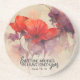 Beautiful Christian round sandstone coaster with inspirational quote scripture depicts a simple, elegant watercolor floral art design with two red flowers and a purple abstract background. It features an encouraging Bible Verse John 15:12, in the words of Jesus, "Love one another as I have loved you."