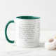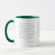 This two-tone mug displays a unique give you glory print font with green letters showcasing the "John 15:16" KJV bible scripture verse over a white background. This verse is referencing the Book Of John 15th chapter showing the 16th verse in this bible scripture quote theme from the King James bible. The rim & handle are glazed in matching colours available in 11-ounce or 15-ounce sizes microwave and dishwasher safe ceramic construction.
