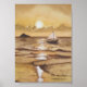 A serene ocean scene in gold tones.