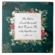 Inspirational quote Christmas ceramic tile depicts a beautiful watercolor design with a dark green background, decorative bulbs, flowers, red berries and gold splashes. It features a portion of Bible Verse John 3:16, "For God so Loved the world that He gave His only begotten son."