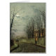 This Romanticism artwork titled - A Wintry Moon is made by the famous artist, John Atkinson Grimshaw using oil on canvas in 1886 at United Kingdom. He painted landscapes that typified seasons or a type of weather; city and suburban street scenes and moonlit views of the docks in London, Leeds, Liverpool, and Glasgow also figured largely in his art. His careful painting and skill in lighting effects meant that he captured both the appearance and the mood of a scene in minute detail.