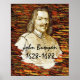 Poster art of Mr. John Bunyan, English pastor, puritan and martyr of the seventeenth century. Author of The Pilgrim's Progress. Imprisoned from 1660-1672 under the Clarendon Code of King Charles II for preaching the gospel without a license from the Church of England. Original artwork by Jon Cardwell.