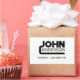 The name John with custom last name and job title. Colours can be changed.