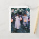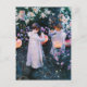 John Singer Sargent Carnation Lily Lily Rose postcard. Oil painting on canvas from 1885-1886. One of American painter John Singer Sargent’s most famous and beloved paintings, Carnation Lily Lily Rose depicts two little girls in play dresses carefully stinging paper lanterns in a garden at dusk. The two children are surrounded by a wealth of flowers including white lilies, pink roses, pink lilies, and light yellow and dark red carnations. This is a beautiful gift for anyone who loves John Singer Sargent, famous flower paintings, and American art.