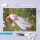 Tissue paper features "Windflowers" aka "Windswept" (1903) by John William Waterhouse, originally an oil-on-canvas painting of a young brunette woman in a field with flowers, her hair and dress tugged by the wind.