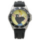 Has heft and feel of expensive stainless steel quartz wrist watches. Solid construction and good looks. Although it had a really top quality rubber strap, I substituted a stainless steel "Shark" style mesh strap, which I think is the most comfortable strap available. Perfect. True colors of original image. Clear, crisp image precisely aligned and spaced.