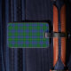 Handsome luggage tag done in the blue, yellow, and green Johnston tartan plaid pattern. A white text area, on the front, has black text ready to personalise with your information. The perfect way to spot your luggage, and makes a great gift idea.