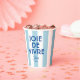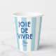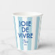 Bring a touch of French charm to your events with our 'Joie De Vivre' Nice Blue Cabana Stripe French Paper Cups. Featuring a chic blue cabana stripe design, these cups add a stylish flair to any occasion, from casual gatherings to elegant celebrations. Personalise them with your custom year and destination to create a unique keepsake that embodies the spirit of France and your favourite memories. Perfect for serving drinks at parties, picnics, or special events, these custom paper cups offer both convenience and a sophisticated, French-inspired touch.