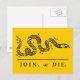 Join Or Die - Libertarian - the famous political cartoon created by Benjamin Franklin for the Pennsylvania Gazette on May 9, 1754. It is a woodcut showing a snake severed into eighths, with each segment labelled with the initial of a British American colony . It's the earliest known pictorial representation of colonial union produced by a British colonist in America.