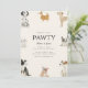 Invite your guests to a pawsitively adorable birthday party with this dog-themed invitation card. The edges of the invite are playfully adorned with cute dog illustrations, setting a fun and festive tone. In the centre, party details are beautifully displayed, ensuring all the important information is clear and easy to read. The back of the card features a charming, simple pattern of dog paws, adding a delightful finishing touch to this whimsical and joyful invitation. This design captures the spirit of your celebration and invites everyone to join in the canine-themed fun.