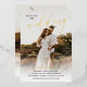 Simple and beautiful double sided two in one photo wedding invitation with your photo covering the wedding invite card. Join us for the wedding of is written at the top of the photo, with wedding in a beautiful calligraphy script printed in gold foil. Your names in gold foil too. On the other side, add another photo and additional wedding information your guests will need.