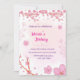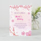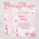 This is a beautifully designed birthday invitation with a floral theme, featuring cherry blossom illustrations. The layout includes the following details.