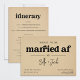 "About to be Married AF." A funny joint bachelor and bachelorette party invitation that includes an itinerary in case you have events planned for multiple days or a weekend trip.