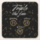 Three Times the Celebration with Our Chic Joint Birthday coasters! Featuring a classy black background with sparkling golden confetti, this coaster is designed to impress. "Triple the Fun" in an elegant script font graces the front, while the celebrants' ages are highlighted in a sophisticated circle, with their names artfully curved above in a modern serif font. Customise every detail to match your celebration. Elevate your party coaster —order today and set the stage for an unforgettable event!