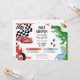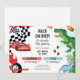 Start your engines and get ready to ROAR with this bold and playful Race Car and Dinosaur Joint Birthday Invitation—perfect for celebrating two adventurous kiddos in one epic party! Featuring speedy race cars and roaring dinosaurs, this energetic design brings together two favorite themes in one unforgettable invite.
