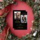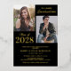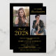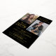 Real foil joint graduation party invitations featuring a stylish black background that can be changed to any colour, photos of the two graduates, and a elegant gold foil double celebration template that is easy to personalise. NOTE: Foil can be changed to silver or rose gold.