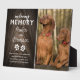 Pet memorial photo plaque featuring a rustic wooden background, a photo for your pet dogs, and a joint text template that is easy to personalise.