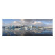 Photo print of the glacier lake Jokulsarlon where icebergs collapsing from Vatnajokull glacier float around with reflection of the clouds in it in Iceland in panorama.