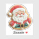 A sugar cookie frosted like a happy Santa Claus in his traditional red suit and green gloves. A Christmas cookie design for your favourite baker.