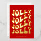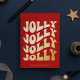 Jolly Jolly Jolly Jolly Christmas Card: a retro design, with a wavy vintage typography in gold foil and a classic red background.