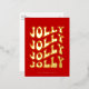 Jolly Jolly Jolly Jolly Christmas Postcard: a retro design, with a wavy vintage typography in gold foil and a classic red background.