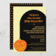 Personalise these cool Halloween party invitations in orange and black with a Jolly Jack O Lantern design suitable for both kids and adults. The front of these custom Halloween invites features the smiling pumpkin artwork in front of an off centre black door - or is that a tombstone? - on ivory with a mix of stylised fonts in orange and ivory. These Halloween invitations reverse to a black background covered in tiny orange polka dots. So easy to customise, you can host a spooktacular Halloween costume party or a Halloween themed birthday with ease just by changing the wording on these cute carved pumpkin design custom invitations that are as much fun for adults as they are for children.