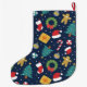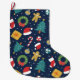 Bring the joy of the season to your mantle with our **Jolly Jumble Christmas Stocking**! Featuring a delightful mix of festive graphics—wreaths, presents, ornaments, gingerbread men, stockings, candy canes, and more—on a rich dark blue background, this stocking is perfect for holding holiday surprises and spreading cheer.
