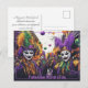 Dive into the vibrant world of Mardi Gras with this eye-popping postcard, adorned in the signature hues of purple, gold, and green. Feathered masks and sparkling beads dazzle against a festive confetti backdrop, capturing the spirit of celebration. Fully customisable text areas on the front and back offer the perfect canvas to add your unique touch, making it ideal for spreading the carnival cheer.