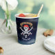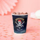 Customise the text for your event. Hand drawn jolly roger with two crossed swords. Hand drawn foggy sky background to match invitation
