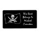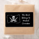 This label features a Jolly Roger pirate flag with a skull and crossed swords. Can be used as a bookplate, shipping label, and more.