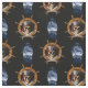 Aargh! Pirate pattern of a pirate skull, eye patch, pirate hat, and crossed swords over an antique wooden ship's wheel.