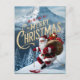 A festive Santa Claus joyfully skiing down a snowy hill, spreading holiday cheer with each turn. His red suit and white beard stand out against the winter landscape.