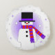 Jolly Snowman with Top Hat and red and purple stripey scarf round Throw Pillow by Krimbles Image by Kaz ©www.Krimbles.