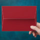 Smiling, jolly snowmen, flowers, and snowflakes on a tan and red squares against a tan background create a cute envelope interior with a rustic, country look. The exterior is dark red. Very cute, and perfect for all your holiday cards.