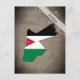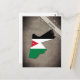 Postkarte mit einem Umriss von Jordanien, gefärbt in den Farben der Nationalflagge.