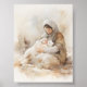 Joseph Holding Lamb and Baby Jesus Watercolor Art Poster