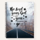 Inspirational quote scripture personalised notebook, journal depicts a photograph of a road lined with trees. It features Bible Verse Joshua 1:9, "Have I not commanded you? Be strong and courageous. Do not be afraid; do not be discouraged, for the Lord your God will be with you wherever you go." Customise the back with name or details of your choice._