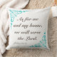Elegantly display your statement of faith. Joshua 24:15 printed on white background with aqua corner flourishes, chocolate brown on back. Customise on back with your family name, wedding date, anniversary, etc. Made of 100% grade A cotton. The perfect complement to your living spaces.