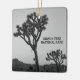 Classic Black and White and Pink and Blue Joshua Tree Souvenir Ceramic Ornament: This is a stunning black and white photograph of the Joshua tree desert. Both the photo and the wording can be replaced with your own. On the back, a pink blue hour Joshua tree sunrise photo is in place, which you may also replace with your own if you prefer. In addition, there is a custom text placeholder to personalize your ornament. This is the perfect Joshua tree souvenir, and is especially suited for National Park lovers.
