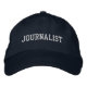 Customisable unisex embroidered baseball hat / baseball cap for a journalist. Shown is a navy blue with white embroidery. Other colour combinations and hat styles available. Designed by Called. See more hats at https://www.zazzle.com/Called/hat