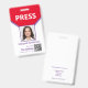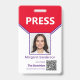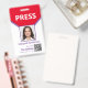 Custom press badge with photo ID and QR code. Upload your own photo and QR Code. Customise the job title, your name and company name to your requirements. Journalist Photo ID and QR Code Press Pass Badge. This template photo and QR Code are for demonstration purposes only.