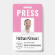 Journalist Press Pass Photo Name Logo ID Pink Badge