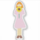 A vector art of a girl holding a sunflower while feeling joy or happiness.