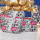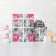 JOY 4 PHOTOS PERSONALIZED HOLIDAY GREETING | HOT PINK. Design by Elke Clarke© for Monogram Gallery. It has the word "JOY" in a combination of a white modern, bold font typography and a script font on a berry pink background tag design on collage of 4 photos you can add. Add your name and year and replace the 4 sample photos with your own. For other colours please contact store owner.