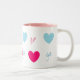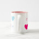 Two lovely hearts with text of love and joy. Hearts are in magenta and light blue colours.